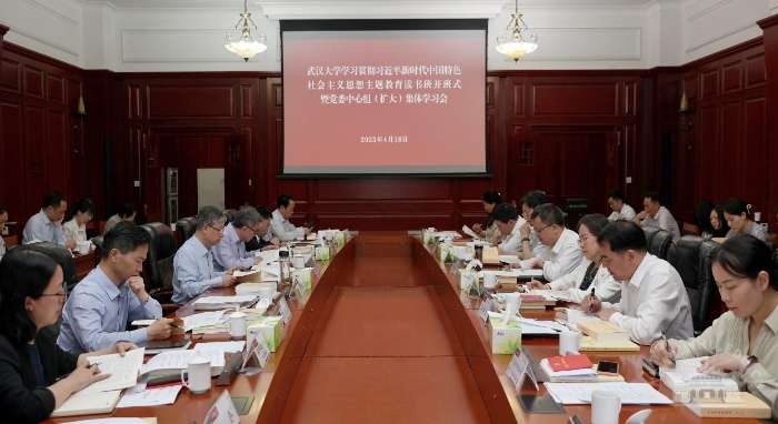 根据党中央部署要求和学校主题教育工作安排,4月18日,武汉大学党委学习贯彻习近平新时代中国特色社会主义思想主题教育读书班开班式暨理论学习中心组(扩大)集体学习会举行。学校主题教育领导小组组长、校党委书记黄泰岩,学校主题教育领导小组第一副组长、校长张平文等全体在校校领导出席会议。