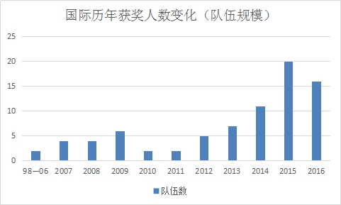 经过数据分析,从1997年至今,数学建模参赛规模不断扩大,获奖队伍人数不断增加。同时,研究生数学建模和国际数学建模比赛的获奖人数也呈逐年递增。