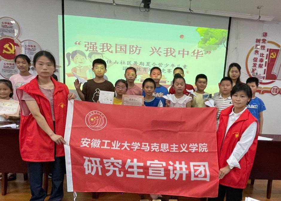 为教育引导少年儿童厚植家国情怀,普及国防知识,增强少年儿童国防意识和国防观念,8月4日,马克思主义学院研究生宣讲团赴佳山社区开展国防教育专题宣讲。辖区内30余名少年儿童及部分家长参加了此次活动。
