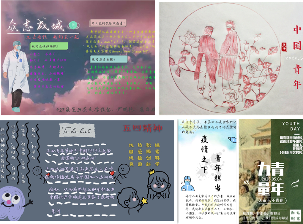 文化育人为载体,传播时代新声。五四前夕,学院各专业团支部充分发挥青年团员的积极性、主动性和创造性,以“艺”战“疫”,通过系列艺术作品强信心、暖人心、聚民心。2019级食品科学与工程专业团支部录制暖心视频,2019级茶学专业团支部组织团员青年开展线上传唱经典红歌、古琴陶笛演奏《我和我的祖国》、京剧《红灯记之都有一颗红亮的心》等文艺活动,为打赢疫情阻击战加油助威;学生分会团支部制作五四创意海报、书法绘画,用镜头、画笔和文字记录这场无声硝烟下最勇敢的战士、最美丽的逆行者、最感人的时刻。同学们表示:在国家危难之际,虽然不能奋斗在战疫一线,但也要为战胜疫情奉献出微薄之力。大家心系疫情动态,同时也看到了疫情防控中的中国力量、中国精神和中国担当。