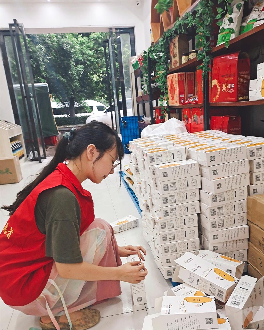 7月26日一早我便来到了农场的农特产品线下体验店,帮助进行有机稻米的分装、抽真空、热封回气及包装流程,非常幸运的是,胡盼盼家庭农场的创始人胡盼盼女士也在店里。她边操作边告诉我:稻米真空包装,除氧从而可以有效防止食品变质,除了除氧保质之外还可以抗压、保鲜等,有效防止稻米袋受压变形,不影响包装盒外观及印刷。