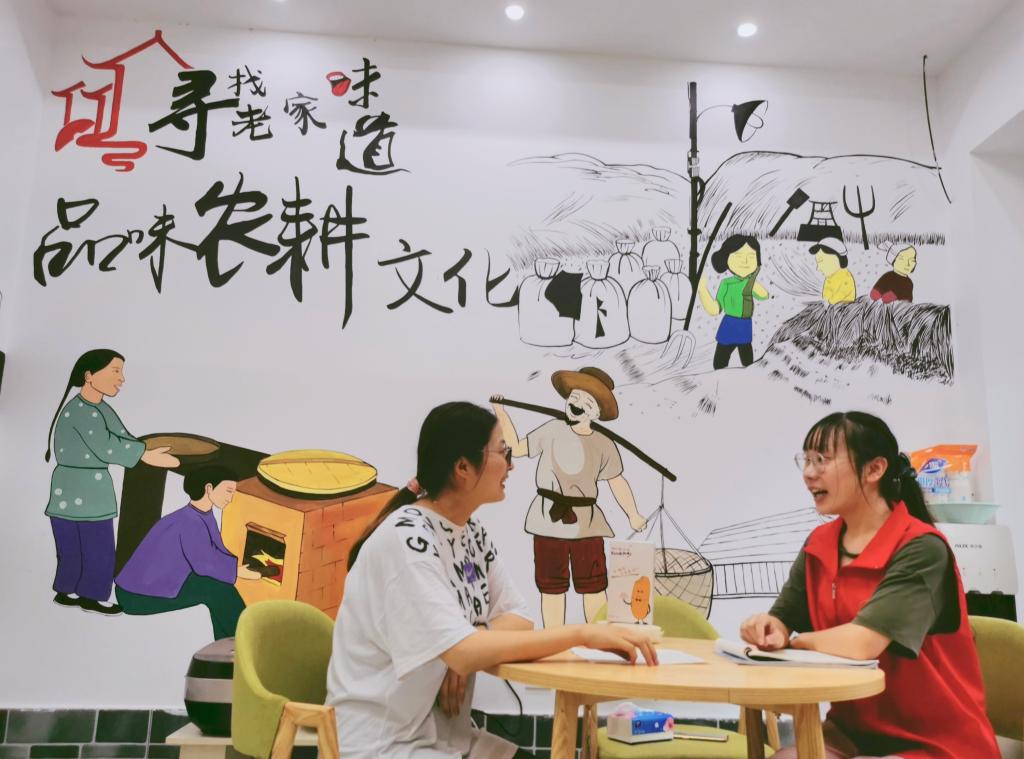 三百盒有机稻米包装完,在征得胡盼盼的同意后,我们坐在在店里的特色文化墙旁进行了人物访谈。胡盼盼作为胡盼盼家庭农场的创始人同时也是合作社创新科技团队的负责人,带领团队不仅探索创新种植结构,种植方式与种植品种,还率先运用“新零售”“社区营销”电商思维,创办“盼盼家农场社区店”,采用农场直达,线上结合线下的模式为消费者提供绿色、健康、新鲜、定制的农产品,也解决了家庭农场及合作社的产品销售问题。她探索出一套相对成熟的“互联网+现代农业”体系:利用电商平台进行直播,结合图文与短视频制作向消费者还原农场生态,真实展示农作物的生长环境与生长过程,让消费者买的放心、吃的安心,同时吸引游客进行现场体验,增加消费者对基地产品的信任程度。线上通过微商平台、微信建群和会员制度强化会员粘性,拉动二次消费,线下积极参与农产品展会从而扩大宣传,获取流量,增加品牌曝光度。消费者则可以在线下体验店深入了解农产品、进行交易、提货。这样线上线下各环节环环相扣,不仅使消费者更深入了解合作社以及农产品,还使合作社更好了解消费者需求,从而精准提供农产品。推动合作社、家庭农场的品牌推广。