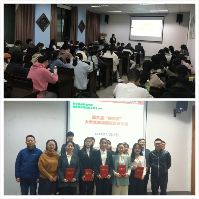 11月19日晚,茶与食品科技学院在茶业楼105会议室举办第三届“捷迅杯”大学生职场模拟面试大赛。招生就业处等单位老师担任本次比赛评委,学院办公室老师主持了本场比赛。
