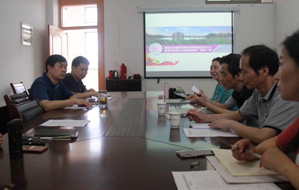 6月12日下午,新闻与传播学院青年教师教学竞赛暨马克思主义新闻观教育“精彩一课”比赛在学院楼505室举行。新闻与传播学院执行院长杨柏岭、部校共建副院长沈正赋、教学副院长马梅,学院本科教学督导组丁云亮、芮宏明、冯明荣、徐丽娜等老师,共同担任比赛评委,教务处李进老师担任特邀点评嘉宾,