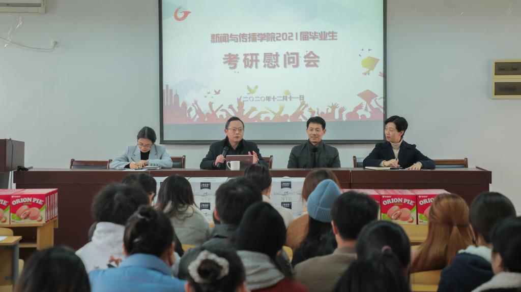 2021年全国硕士研究生招生考试在即,为向考研学子表达关怀与鼓励,新闻与传播学院于12月11日下午在学院楼会议室举行了2021届考研学生慰问会。院党委书记张师帅、党员杨柏岭、院党委副书记宋静、副院长,党员马梅出席慰问会。会议由宋静主持。