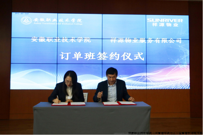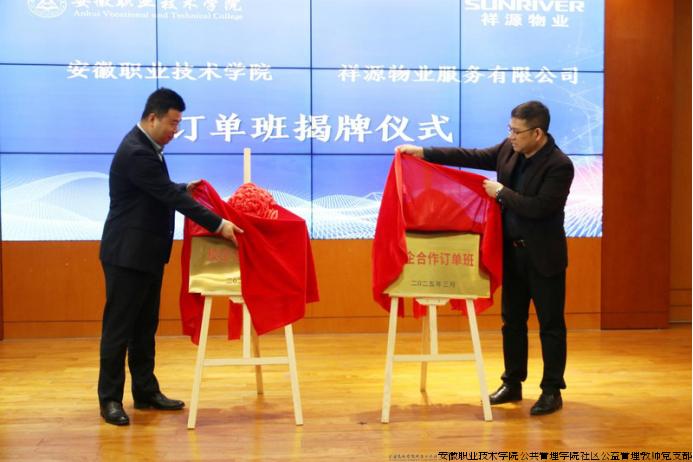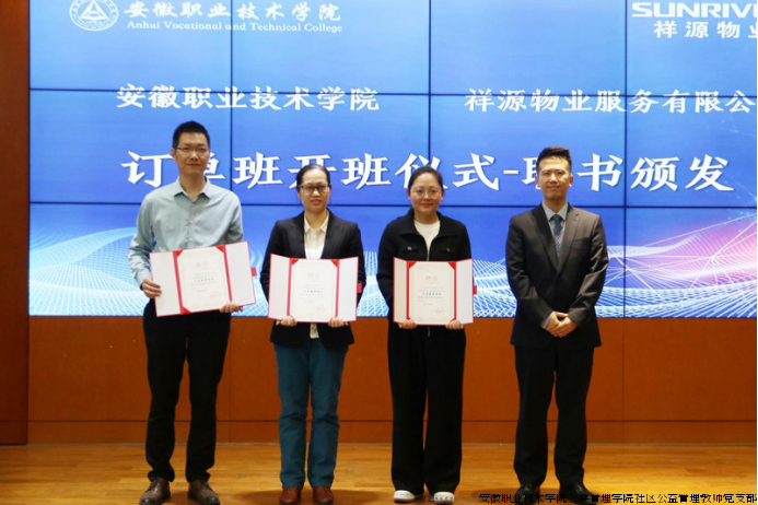 安徽祥源物业服务有限公司副总经理刘通对院领导、师生表示热烈欢迎,对订单班开班表示热烈祝贺,对安徽职业技术学院祥源物业“智慧物业产业学院”成立以来校企双方在人才培养、行业需求、师资互派等方面的工作予以高度认可,对订单班的全体同学提出了“全身心投入,积极转变角色,努力成为企业的出色员工”的要求。