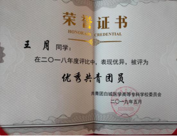 王月同学所获荣誉: