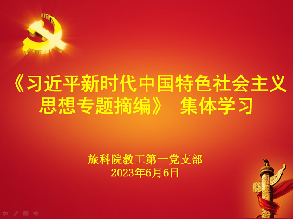 2023年6月6日,旅科院教工第一党支部党课开讲,以线下线上相结合的方式集体学习《习近平新时代中国特色社会主义思想专题摘编》。