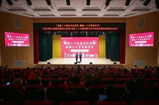 经济学院党委在推进系列主题教育活动的同时,也致力于把学习宣传贯彻党的二十大精神引向深入。根据《经济学院党委关于深入学习宣传贯彻党的二十大精神的工作方案》要求,学院成立党的二十大精神暨习近平新时代中国特色社会主义思想宣讲团。