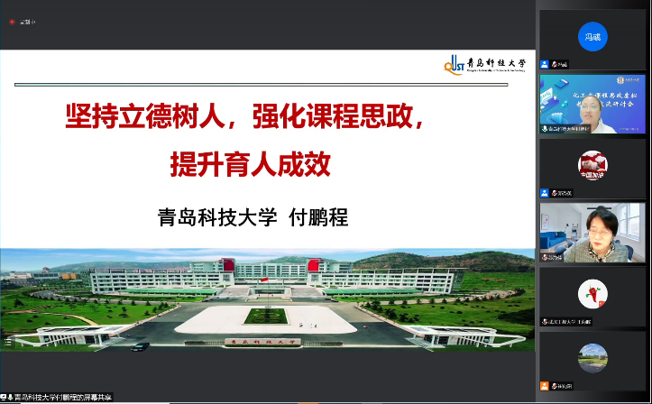 交流研讨阶段,化学工业出版社代表徐雅妮表示,化工出版社将全力支持虚拟教研室建设,协助推进教研成果推广工作,不断探索课程思政研究的方式方法。沈阳化工大学教务处处长于三三表示,各高校在课程思政建设中都有着非常有效的方法,通过加强沟通交流,推进化工类课程思政建设,不断提升化工类专业的社会影响力。其他参会教师积极发言,就六所高校课程思政建设方法谈了心得体会,并表示虚拟教研室体现了基层教学组织的新形态,打破时空界限实现了跨地域、跨院校教师间的研讨交流。
