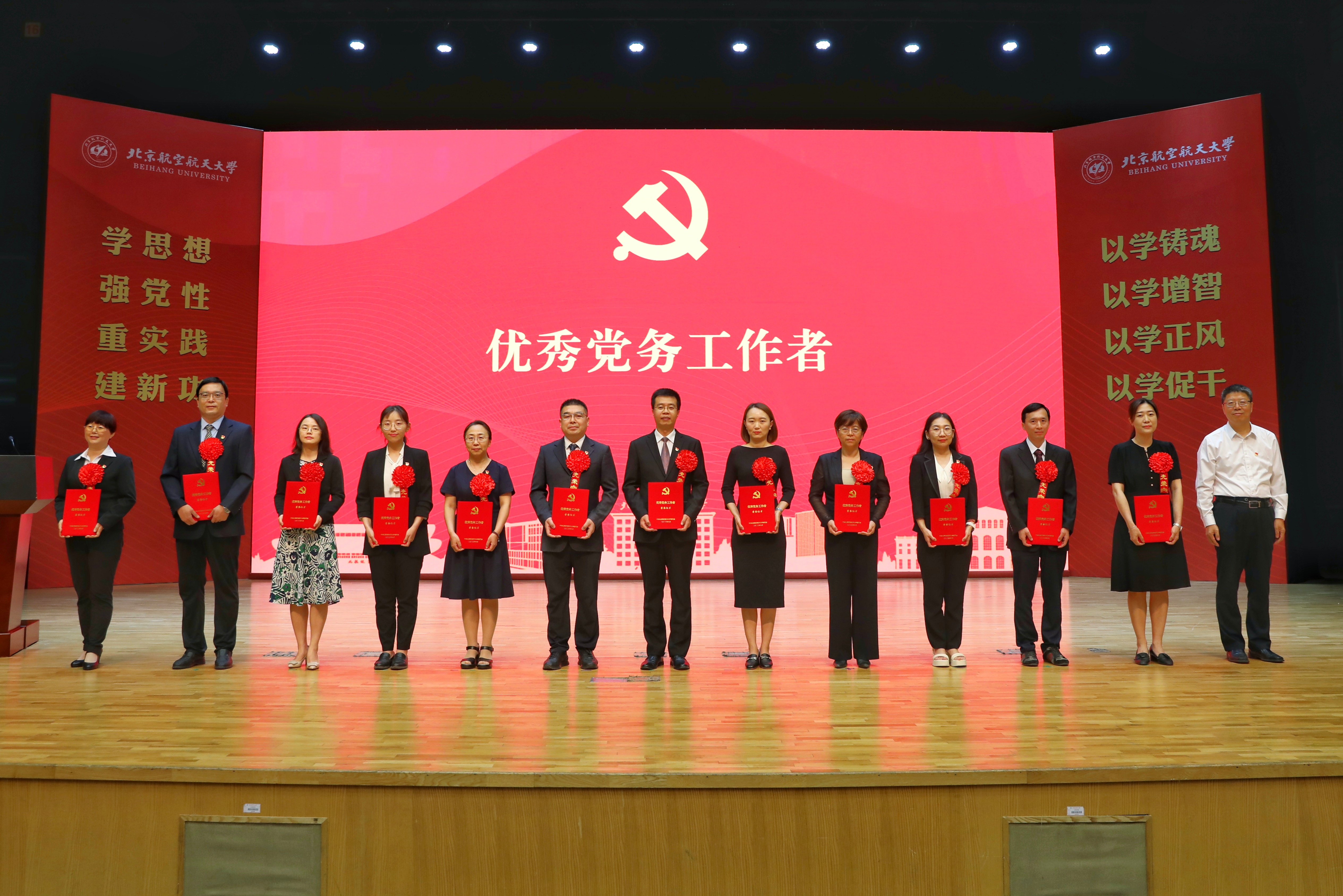 2023年是中国共产党成立102周年,在全党上下深入开展学习贯彻习近平新时代中国特色社会主义思想主题教育之际,为表彰先进、交流经验,庆祝党的生日,推动学校事业发展再上新台阶,6月28日下午,我校在晨兴音乐厅隆重召开北京航空航天大学“两优一先”表彰大会。校党委书记赵长禄,党委副书记、校长王云鹏,全体在校校领导,全校管理六级岗(含)以上干部,受表彰优秀共产党员、优秀党务工作者和先进基层党组织代表,专职组织员,教职工党支部书记和党员代表,学生党员代表,老党员代表参会,中央主题教育第54指导组组长靳诺出席并指导。表彰大会由校党委副书记、纪委书记何新洲主持。