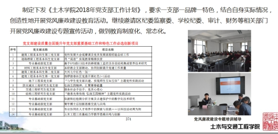 专业基础部党支部作为土木与交通工程学院的的一个基层支部,在学校党委和学院党委的领导和支持下,在支部党建工作取得了一定的成绩。专业基础部党支部开展一人一主题的党性实践活动历史悠久,从2013年开始,积极探索高校基层教工支部党性活动的创新型模式,开展了“教与学”主题系列活动。经过多年的积累与发展,特别是近年来,支部以党员“人人参与、人人实践、人人研究”的协同创新模式为主思路,在探索基层党建工作的常态化与不断创新活力、探索促进行政教学与科研的党建全覆盖等方面做了积极的努力和实践,对于激活和创新基层党支部的工作模式积累了很多经验。