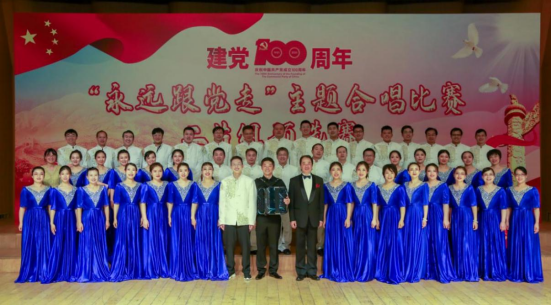 之前6月23日,在中国国家图书馆音乐厅举行“永远跟党走”主题合唱比赛决赛,董军老师参与了学校教工合唱团。合唱团40余名教职工参赛,现场深情演唱《向往》《祖国,慈祥的母亲》,喜获高校组三等奖。