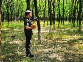 专业基础综合实习的植被监测教学模块由谢湉老师负责,通过对各种景观类型的实地调研,植被监测模块最终选择人工林、灌丛和草地三种样地,并最终确定了三个典型样方:人工刺槐林乔木样方、忍冬灌木样方和青蒿草本样方。