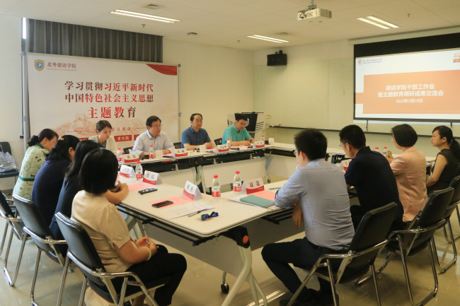 为持续推进学习贯彻习近平新时代中国特色社会主义思想主题教育走深走实,确保暑假期间学校主题教育有效开展,近日,北京外国语大学学校领导班子成员深入各二级单位参加主题教育调研成果交流会。