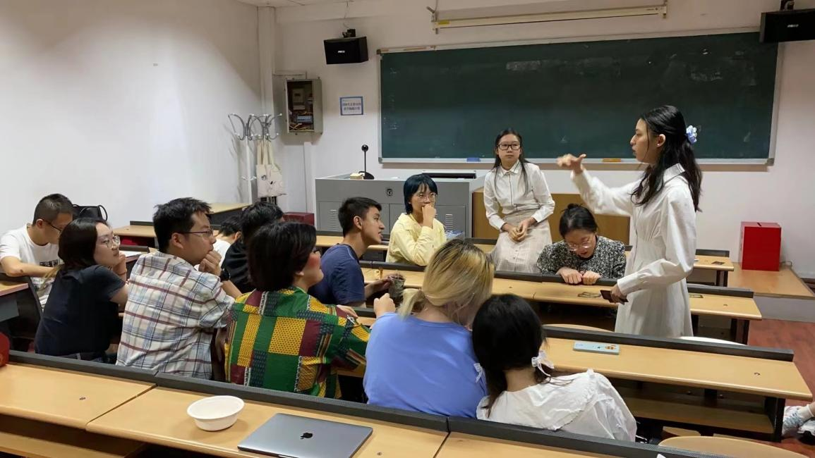 阿姆哈拉语教研室主任张春改老师分享了她在非洲留学的经验,鼓励同学们在留学期间努力学习、精进语言,同时锻炼自我生活的能力。随后,同学们分享食物、展示才艺,一起享受愉快的游戏时光。