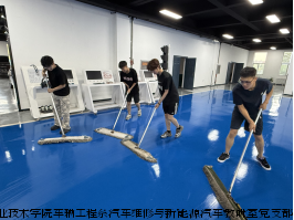 在清洁过程中,同学们手持清洁工具,仔细擦拭设备表面的油污,清理地面的碎屑,并对墙角积尘进行彻底清扫。活动将劳动实践与专业学习深度融合,引导学生在服务集体中践行“爱护设备、规范操作”的职业准则。