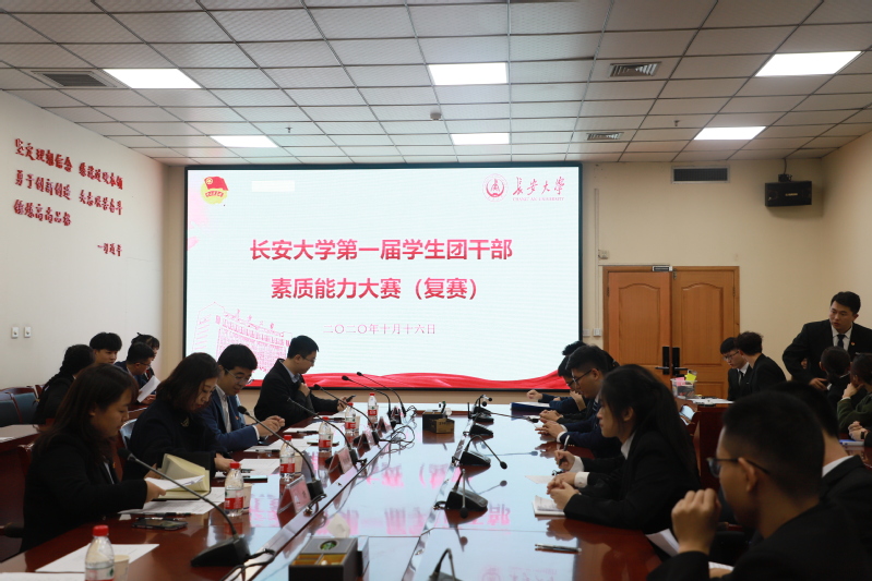 为深入学习贯彻习近平新时代中国特色社会主义思想,贯彻落实全团抓思想引领、全团大抓基层的工作要求,着力提升学生团干部的理论水平、专业素养和工作能力,全面加强学校团干部队伍建设,按照共青团陕西省委办公室、中共陕西省委教育工委办公室《关于举办第一届陕西高校团干部素质能力大赛的通知》精神,长安大学于10月中下旬举行学生团干部素质能力大赛。经过各院系分团委评选推荐,37位优秀的学生团干部从初赛中脱颖而出,进入复赛。校团委副书记李阳、校团委㢟宣传部主任刘扬、机关团工委书记徐英、社区团工委书记郭咏梅莅临复赛现场并担任评委。