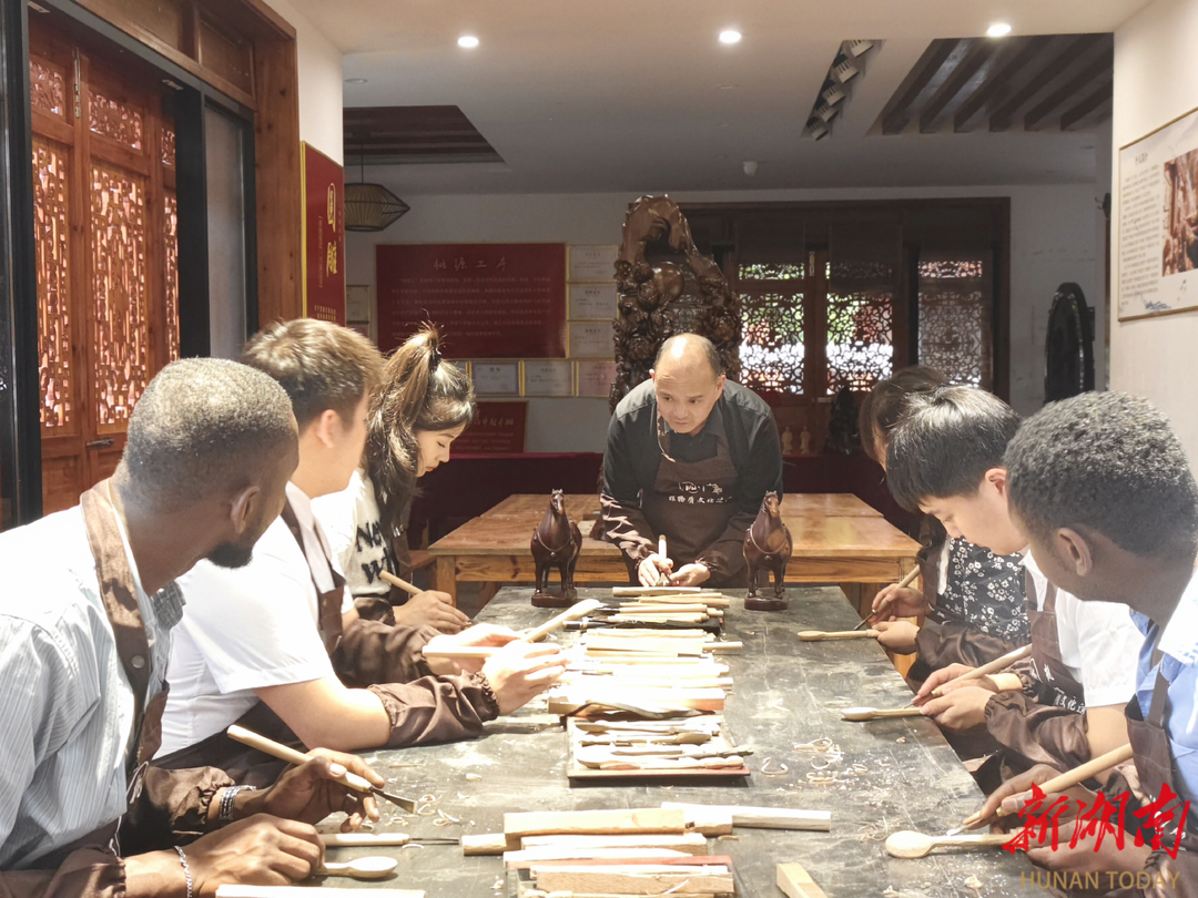 团队成员还将非遗文化课搬进留学生课堂,推动文明交流互鉴,吸引了两名非洲留学生加入团队,在社交平台上用英文和法语传播桃源木雕文化,提升非遗文化的国际影响力。