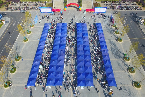 11月7日,由巢湖学院主办、安巢经开区人社局和巢湖市人社局协办、新安人才网承办的“巢湖学院2021届毕业生秋季校园双选会”在图书馆喷泉广场顺利举办。双选会吸引中铁四局、华润置地、中粮粮油、京东、苏宁等160多家用人单位到场招贤纳才。校党委副书记阮爱民,副校长黄志圣、朱定秀等来到现场指导工作。省大中专毕业生就业指导中心、安巢经开区人社局、巢湖市人社局相关同志,各学院党委书记、副书记,毕业班辅导员等到场指导学生求职应聘。
