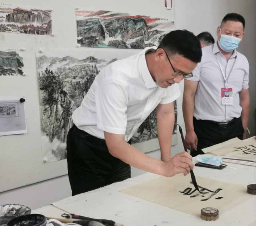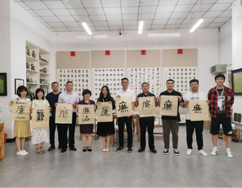 接着,两个支部的党员老师们提起毛笔,用心书写“廉”字。在书写“廉”字时,美术学院党总支纪检委员、年轻的国画家陈明老师,带头书写了隶书的“廉”字,同时为大家解读了“廉”字的含义,他谈到,《说文解字》解读说“堂之侧边曰廉,故从广”,由堂边的棱角引申为人的棱角,做人有棱有角,廉就有了端方、方正、正直的意思,廉洁方正是对我们每个共产党员的要求。党政办刘贵振主任提笔写“廉”后谈到,各位党员老师,我们作为党员干部,一定要坚决贯彻落实习近平总书记关于从严治党的重要讲话精神,写好廉洁字,做好廉洁事。每一位党员应该廉洁自律做好表率,主动转变作风,在日常工作中发挥先锋模范作用,高标准的完成工作任务。