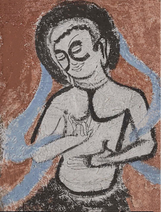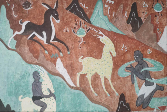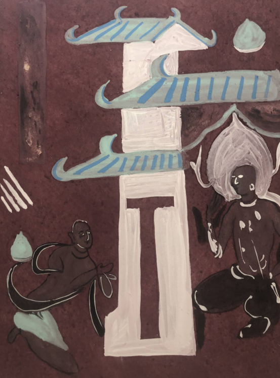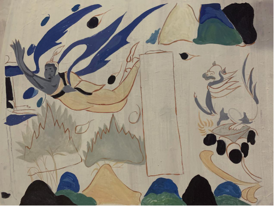 董唐迈:这次的敦煌壁画临摹课程,让我收获颇多,为了画作不惜一切的方法和尝试各种方式使画面更接近,砂纸打磨,小刀刻,来使作品更有韵味,学习是我们一直在丰富自己的过程,这个过程,也从未撼动和改变。