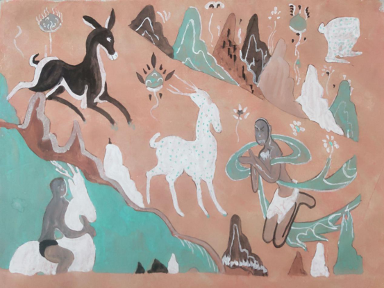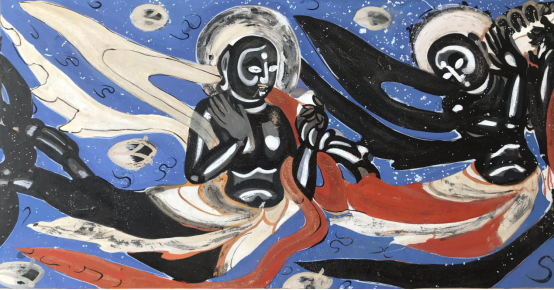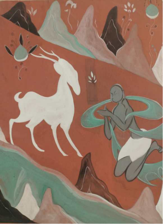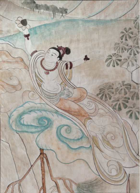 孙家琪:在这一段时间里我们对敦煌壁画展开了临摹和学习。对敦煌壁画深入了解之后,深深被其震撼,它位于丝绸之路上的一个古老城市。随着佛教流入中原。佛教逐渐与西域文化,中原文化共同孕育而成。佛教天人,道教羽人,西域飞天在这里遨游九天。敦煌壁画是中国艺术家的天才之作,也是人类美术史上的一个奇迹。