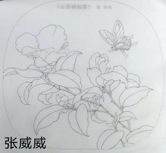 陈璇:经过四周白描课程的学习,让我了解到工笔花鸟画的线是一种概括洗练而又灵动的艺术语言,具有韵律美与节奏美,画中每一条线都在相互呼应,让我感受到了线条的美。