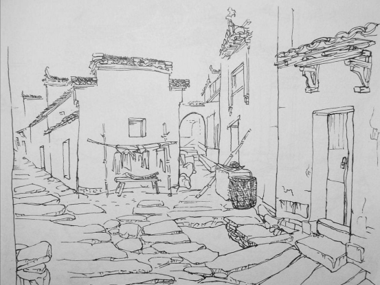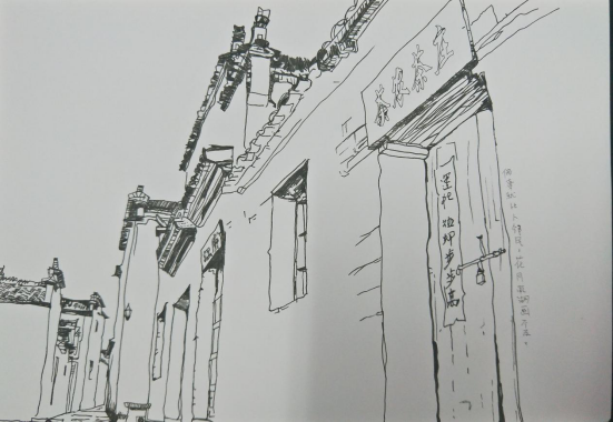桑然:由于疫情原因,我们的外出写生改成了在家里。通过老师用app的方式给我们讲习。带我们领略安徽写生的风景以及当地特色。