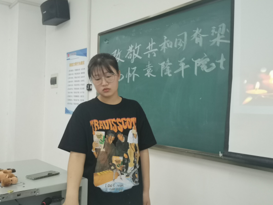班会最后,老师们和团支书带领同学们全体起立一同致敬袁隆平院士并进行三分钟默哀。