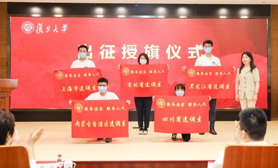 为响应习近平总书记“在为人民服务中茁壮成长、在艰苦奋斗中砥砺意志品质、在实践中增长工作本领”的号召,6月19日下午,“勇担使命 不负韶华”复旦大学2020届赴西部、基层、国家重点单位就业毕业生出征仪式暨实习实践基地签约仪式举行,激励引导毕业生正确认识自身担负的时代责任和历史使命,把个人理想抱负同国家前途、民族命运紧密相连,到基层去、到祖国最需要的地方去,贡献青年力量、书写青春华章。