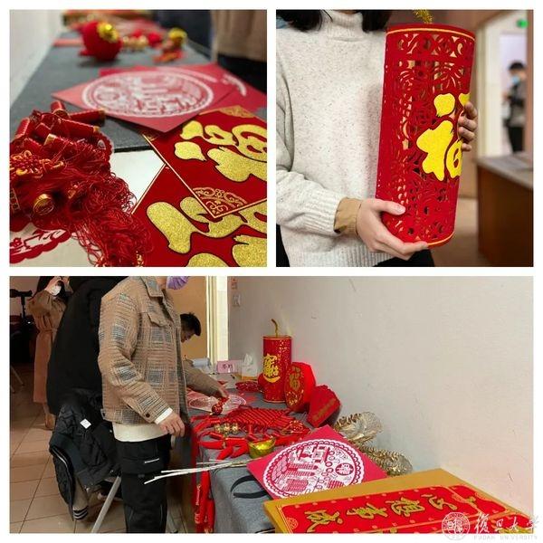 腊月廿八下午,手写春联、精美窗花、喜庆的新年饰品、年味小道具,还有络绎不绝前来拍摄贺岁照的复旦人,让叶耀珍楼302室热闹非凡,也让复旦校园里充满火红年味!
