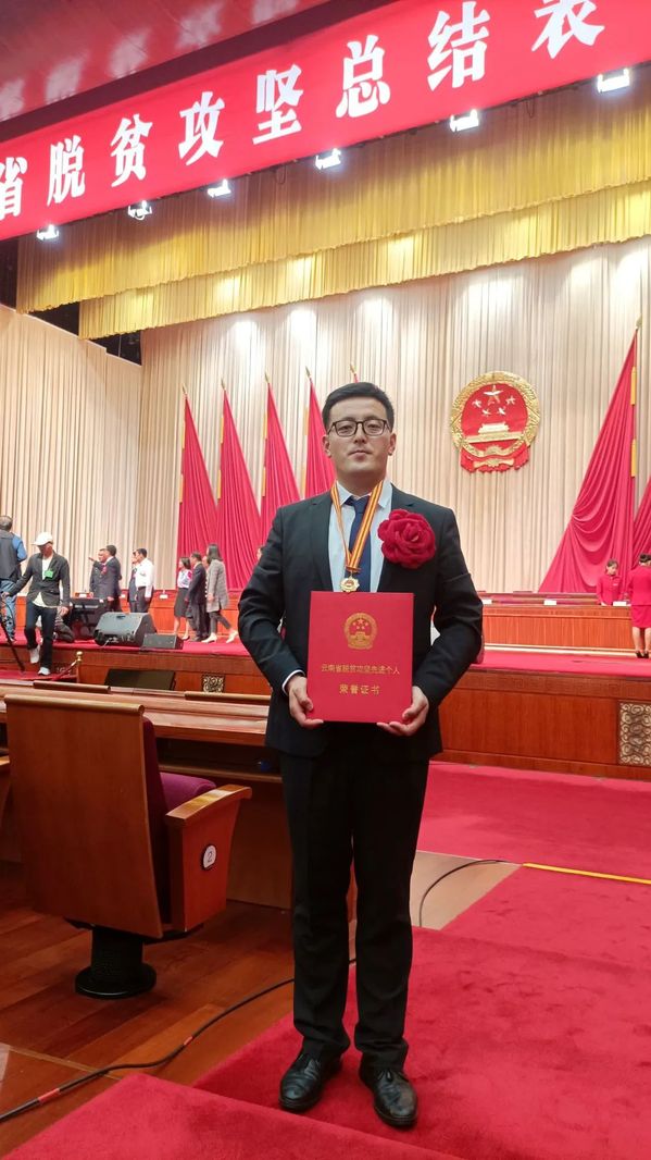 “脱贫攻坚书写历史,乡村振兴接续奋斗!在获得云南省脱贫攻坚先进个人的时刻,对能亲身经历和参与这场伟大的脱贫攻坚战感到无比荣耀,深切体会到只有伟大的中国共产党才能完成决胜脱贫攻坚这一人类的历史伟业。通过火线历练,全方位收获了个人成长。感恩感谢复旦携手永平,攻坚克难,尽锐出战,共画同心圆,同筑小康梦,永平成功脱贫饱含着全体复旦人的心血和汗水。千年脱贫梦,今朝把梦圆。如今归来,还是战士,我们牢记嘱托,感恩接力,在复旦带领下向着新征程继续奋勇前进!”