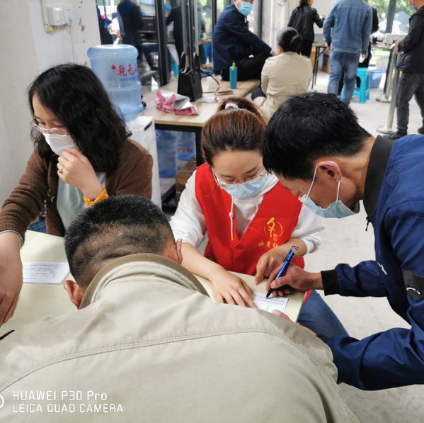 2020年2月陈广祺在抗“疫”一线帮助企业复工复产(左二)