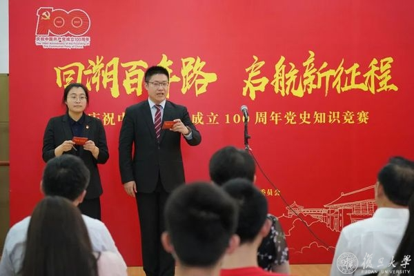 为庆祝中国共产党成立100周年,深入贯彻习近平总书记在党史学习教育动员大会上的重要讲话精神,持续推动党史学习教育走深走实,近日,由复旦大学上海医学院党委主办的主题为“回溯百年路 启航新征程”的党史知识竞赛举行,来自各二级单位党组织的15支队伍共45名选手参加比赛。复旦大学党委副书记、上海医学院党委书记袁正宏,复旦大学上海医学院党委副书记张艳萍,复旦大学上海医学院党委副书记、副院长徐军等领导出席本次活动并为获胜队伍颁奖。