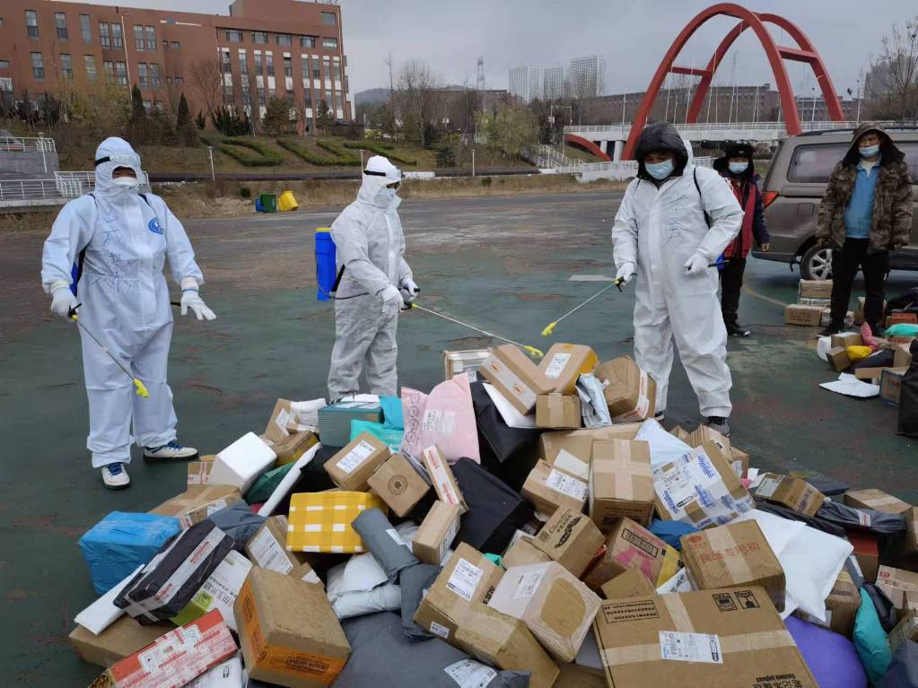 为避免过度聚集,校内快递在凌水河东侧操场的开放场地集中收发,并由校规办工作人员对全部快件进行消杀;为做好封闭管理,学校要求并监督各快递公司固定进校车辆及住校人员,驾驶员不得下车,由住校人员卸货,卸货后快递车辆按原路离校。11月15日,北山生活区快递恢复快递收发,在ABC区分别指定地点进行消杀后派发。11月29日,主校区9处丰巢快递柜约7000个仓格全部消杀后重新启用。
