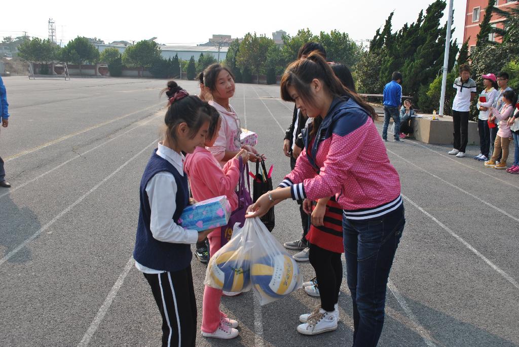 国际商务语言学院学生代表向儿童村小学生捐助学习用品和体育用品/摄影 姜世洁(2011级商务日语专业二班)