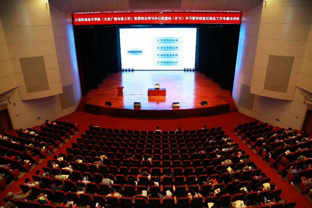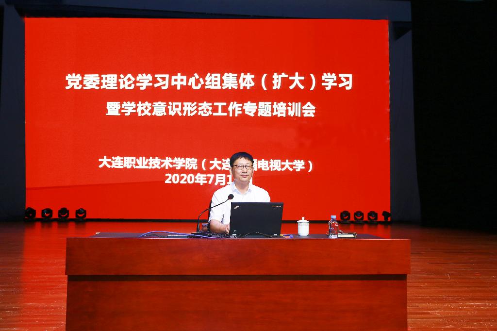 7月10日下午,学校在夏家河校区文化活动中心召开党委理论学习中心组2020年第10次集体(扩大)学习暨学校意识形态工作专题培训会,深入学习贯彻习近平总书记关于宗教工作的重要论述和党的宗教理论方针政策。会议邀请大连市委统战部副部长、市民族和宗教事务局局长薛军作专题辅导报告。学校领导于国喜书记主持会议。学校党委委员参加学习。