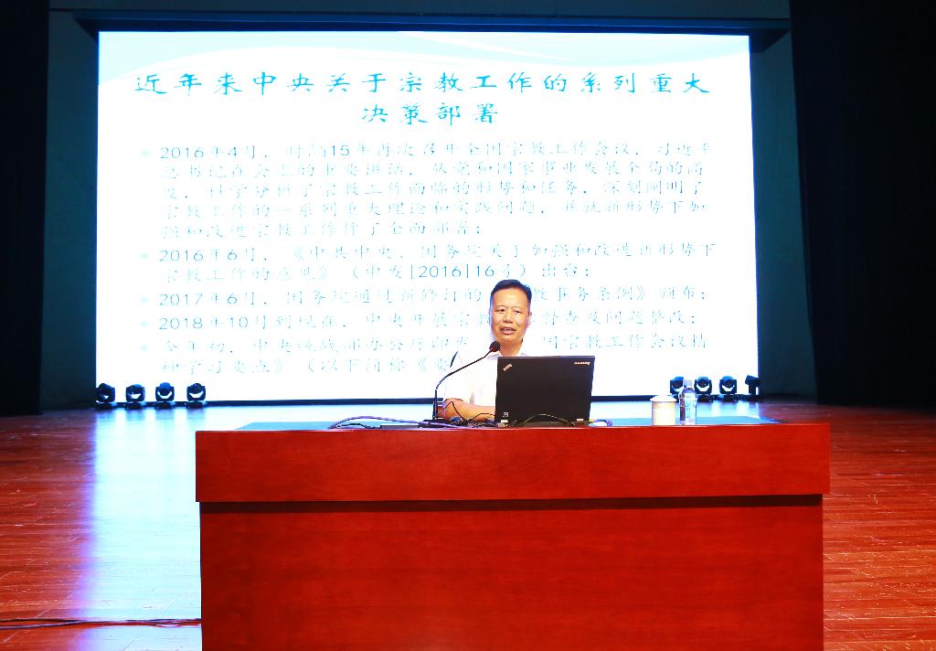 大连市委统战部副部长、市民族和宗教事务局局长薛军作专题辅导报告/摄影 崔巍
