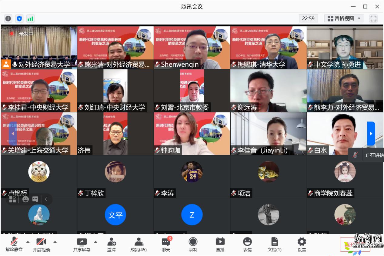 11月27日,对外经济贸易大学举办第二届通识教育论坛“新时代财经类高校通识教育的变革之道”,会议采取线上线下相结合的形式。来自北京大学、清华大学、上海财经大学、上海交通大学、中央财经大学、对外经济贸易大学等著名高校的十余位专家学者围绕“新时代通识教育的新变革与新趋势”、“新时代通识教育中教学理念的变化与革新”两大主题进行了深入讨论和交流。全国多所高校的100多位教师参加了会议。