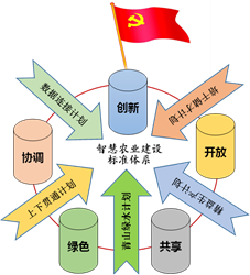 学校在帮扶中确立了建设“智慧大农业”的整体思路(图1)其中,一面旗帜是指坚持党建引领精准扶贫、精准脱贫,五大理念是指坚持创新、协调、绿色、开放、共享的发展理念,五项行动分别是数据连接计划、精益生产计划、绿水青山计划、上下贯通计划、培干储才计划,一个目标为致力于形成我国智慧农业建设的评价标准体系。在引入电子信息技术后,数据要素成为了新生产要素,相比传统农业,“智慧大农业”内涵更丰富、涵盖更广阔。