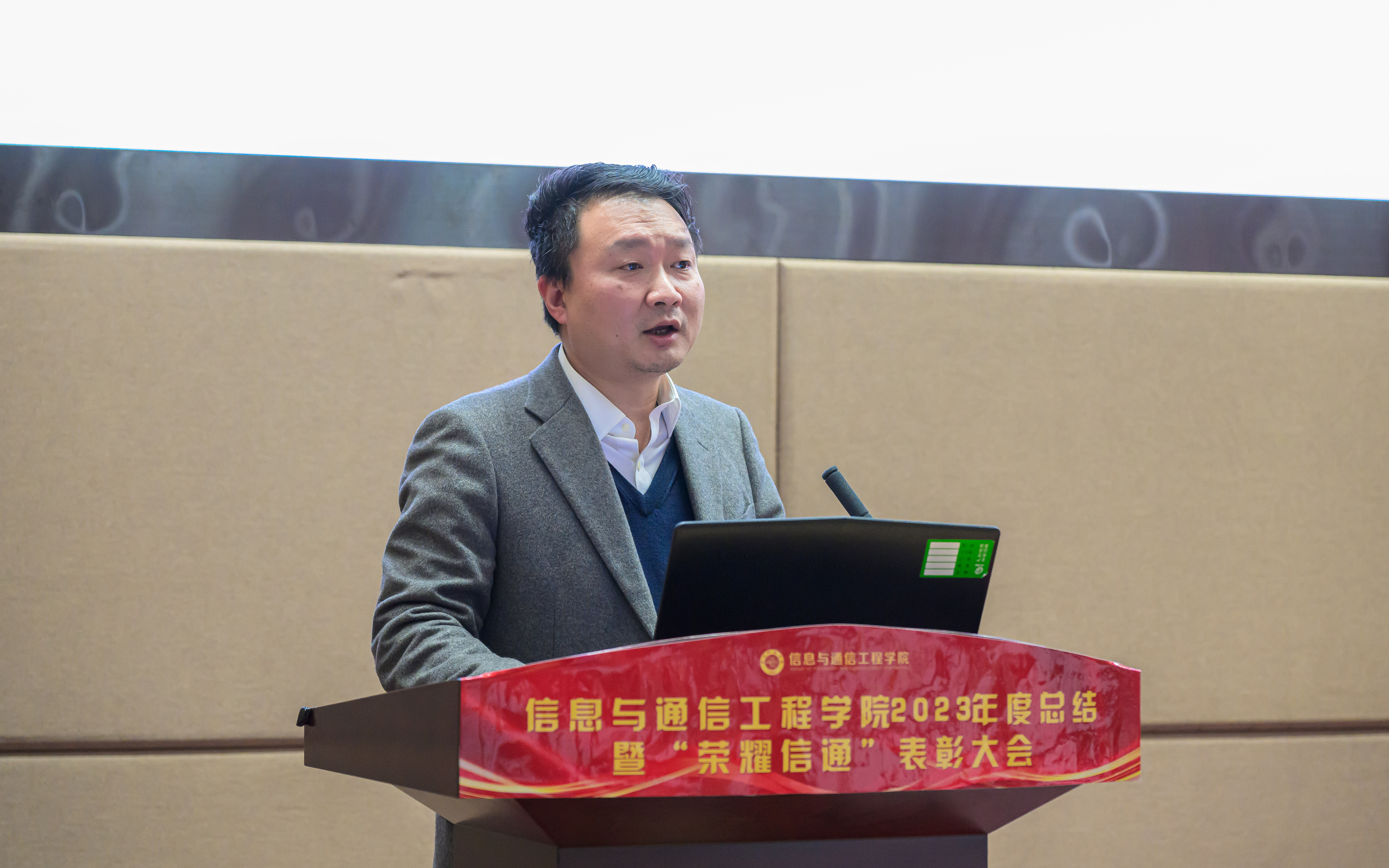 1月15日,信息与通信工程学院2023年度总结暨“荣耀信通”表彰大会在求实厅举行。学校党委学生工作部部长钱云光、合作发展部部长田广和,学院全体领导和教职工出席大会。