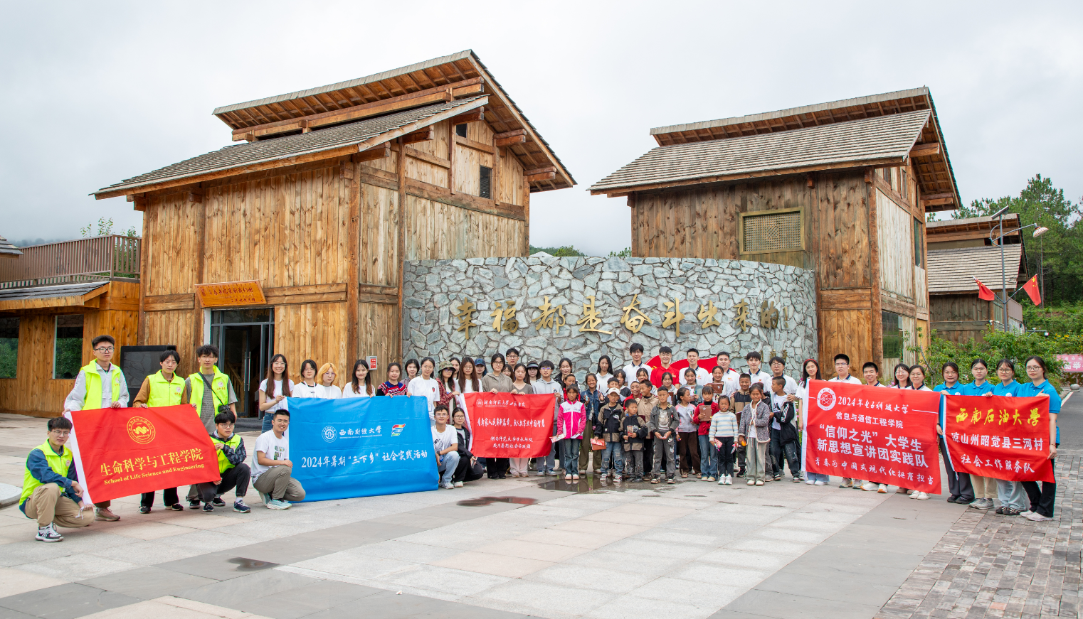 7月10日,信通学院“信仰之光”大学生新思想宣讲团在凉山州昭觉县三河村,与西南财经大学实践队携手,面向三河村中小学生开展“讲好中国故事,争做有为少年”的主题宣讲活动。宣讲团10名成员参加活动,他们均是信通学院本科生第七党支部成员。