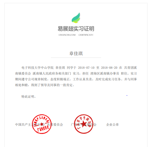 2018.07 – 2018.08汕头市澄海区溪南镇人民政府办事员