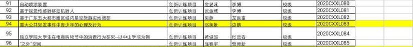 1、项目“创业环境对大学生创业自我效能感、创业意向的影响研究”、“绣吧”和“重大公共突发事件中青少年的心理及行为”均获2020年度大学生创新训练计划项目校级立项