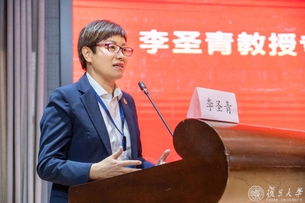 李圣青以“践行医者初心使命,弘扬伟大抗疫精神”为题,在党课报告中向现场师生分享了复旦大学附属华山医院第四批援鄂医疗队在武汉奋战的经历。抗疫期间,一名名医护人员挺身而出,抱着“抗疫必胜”“队友一个不少地平安回来”的信念,和疫情赛跑、和时间赛跑。这是华山医院秉承的红十字文化——“救死扶伤、仁爱奉献”的体现;是复旦上医传承的“为人群服务”的精神体现;更是习近平总书记深刻概括的伟大抗疫精神——“生命至上、举国同心、舍生忘死、尊重科学、命运与共”的体现。
