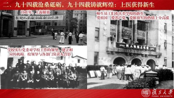 解放以后,上医确立党的领导,获得新生:1952年,全国高等院校进行了大规模的院系调整。1959年,上医被确定为全国16所重点高等院校之一。