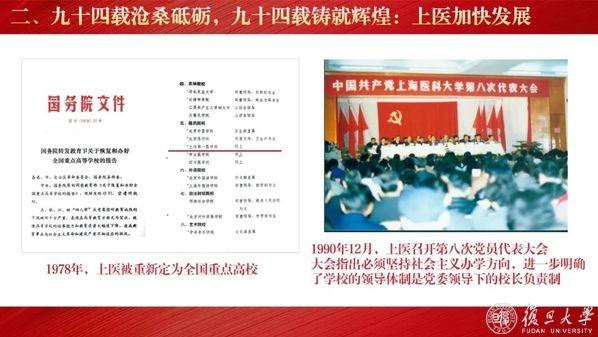 袁正宏带领大家沿着时间脉络,共同回顾上医94年发展史上的“高光时刻”。