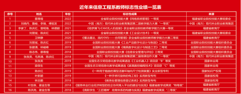 近日,我系党建工作品牌项目“多措并举推进党建工作提质增效”入选福建省新时代党建优秀案例,这是继我系党总支获得2021年全省高校先进基层党组织后党建工作取得的又一项荣誉。近日,我系《无人机应用技术专业教学资源库》通过省级专业教学资源库验收、《无人机空气动力学与飞行原理》通过省级精品在线开放课程验收、《MySQL数据库技术》和《HTML5与CSS3 开发技术》2门课程获得省级精品在线开放课程立项。这是我系在省级教育信息化项目上取得的重要突破,彰显了多年来系部在人才培养建设探索的成效。而这些只是近年来系部党建和业务方面取得成效的一部分。
