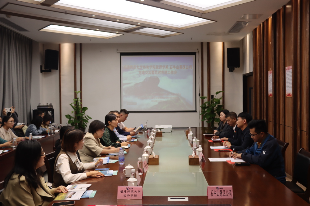 作为泉州市科技特派员团队成员,管理学系教师党员李莉、翁清清、刘飞针对企业所管辖的石牛山景区的经营现状,与林剑雄支部书记就文旅项目的宣传策划及推广进行了深入探讨,他们结合各自的专业背景与实践经验,为景区发展提出了建议。会议尾声,管理学系教工党支部书记欧伟强与林剑雄支部书记共同签署了党建共建协议书,正式开启双方在党建联学联建、人才培养及科技赋能等领域的合作。